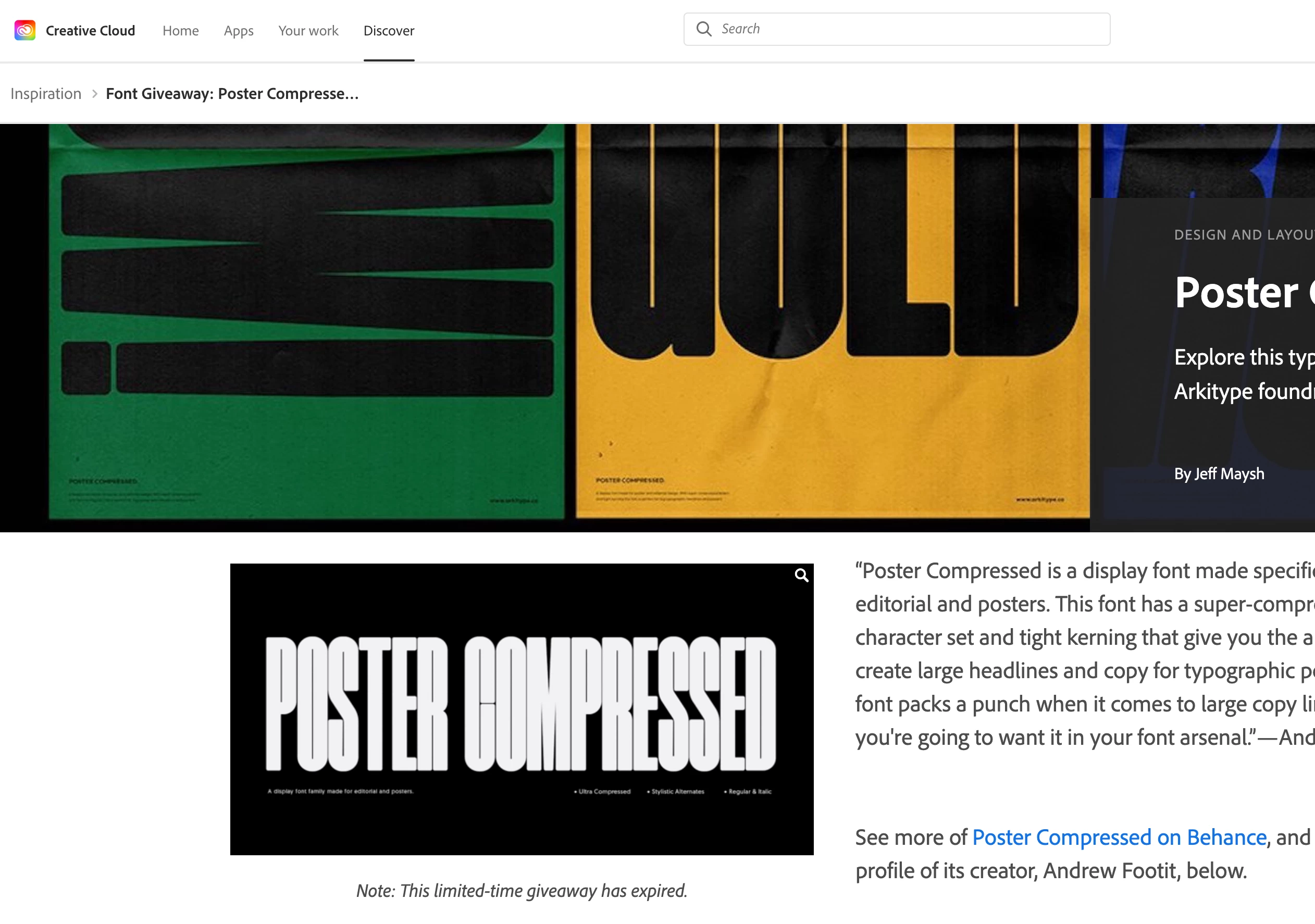 I received a newsletter from adobe creative cloud titled "A free font just for you" and clicked to get the download. That lead me to a page displaying the font where there was no where to download, just areas to click to purchase. There was a small note that showed "This limited time giveaway has expired". Note I was on my computer when I received this email at 10:03am and opened the email right when received, and the offer was instantly gone. While I hope I'm wrong, here it seems like Adobe baited me to click and purchase.