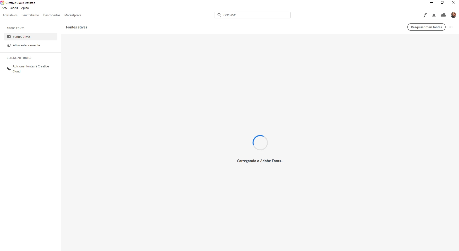 Quando abro meu Creative Cloud no computador nao consigo acessar minha nuvem atraves do programa nem minhas fontes baixadas, ja analisei o mesmo, analise meu plano e tudo mais, mas nao consigo acessar a nuvem nem fontes atraves do Creative Cloud, espoero que me visualizar ajudar , obrigado.