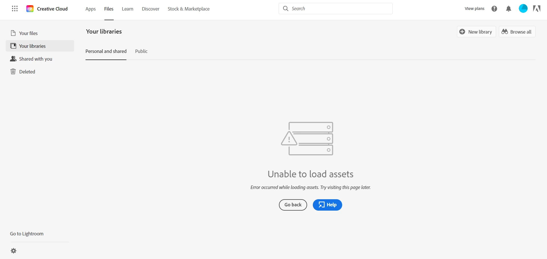 "Unable to load assets (Error occurred while loading assets. Try visiting this page later.)"