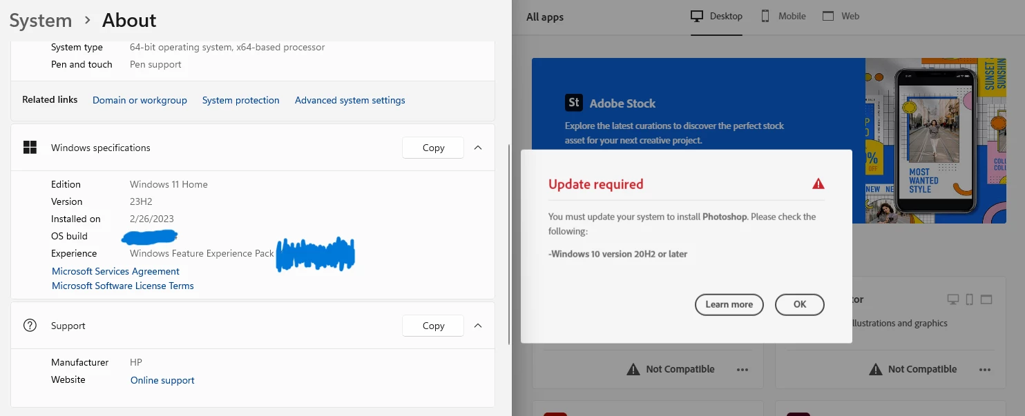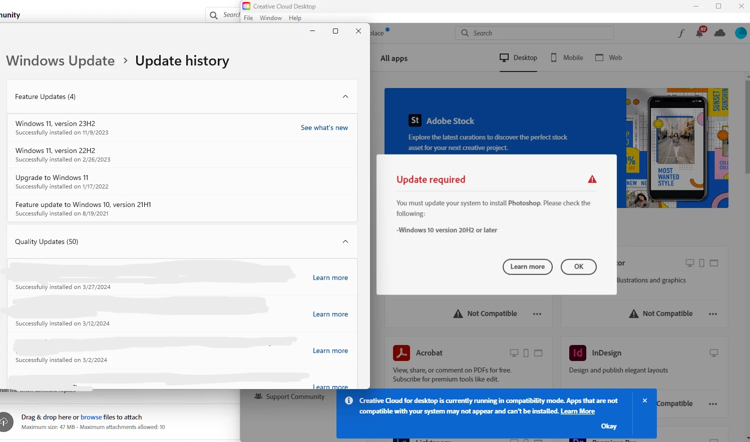 For about a year, Creative Cloud has been telling me my apps are not compatible. Any help?
