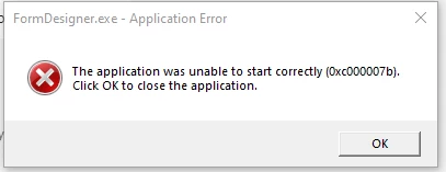 UUday Kumar32295041lzxgParticipantForum|Forum|2 years agoSeptember 27, 2023QuestionFormsDesigner.exe Application errorForum|Forum|2 years agoSeptember 27, 20231 reply213 viewsHi I am facing FormsDesigner.exe application error (0xc000007b) when i try to launch the app. After the installation I wasn't able to lauch anytime, Please help me with this issue RegardsUday