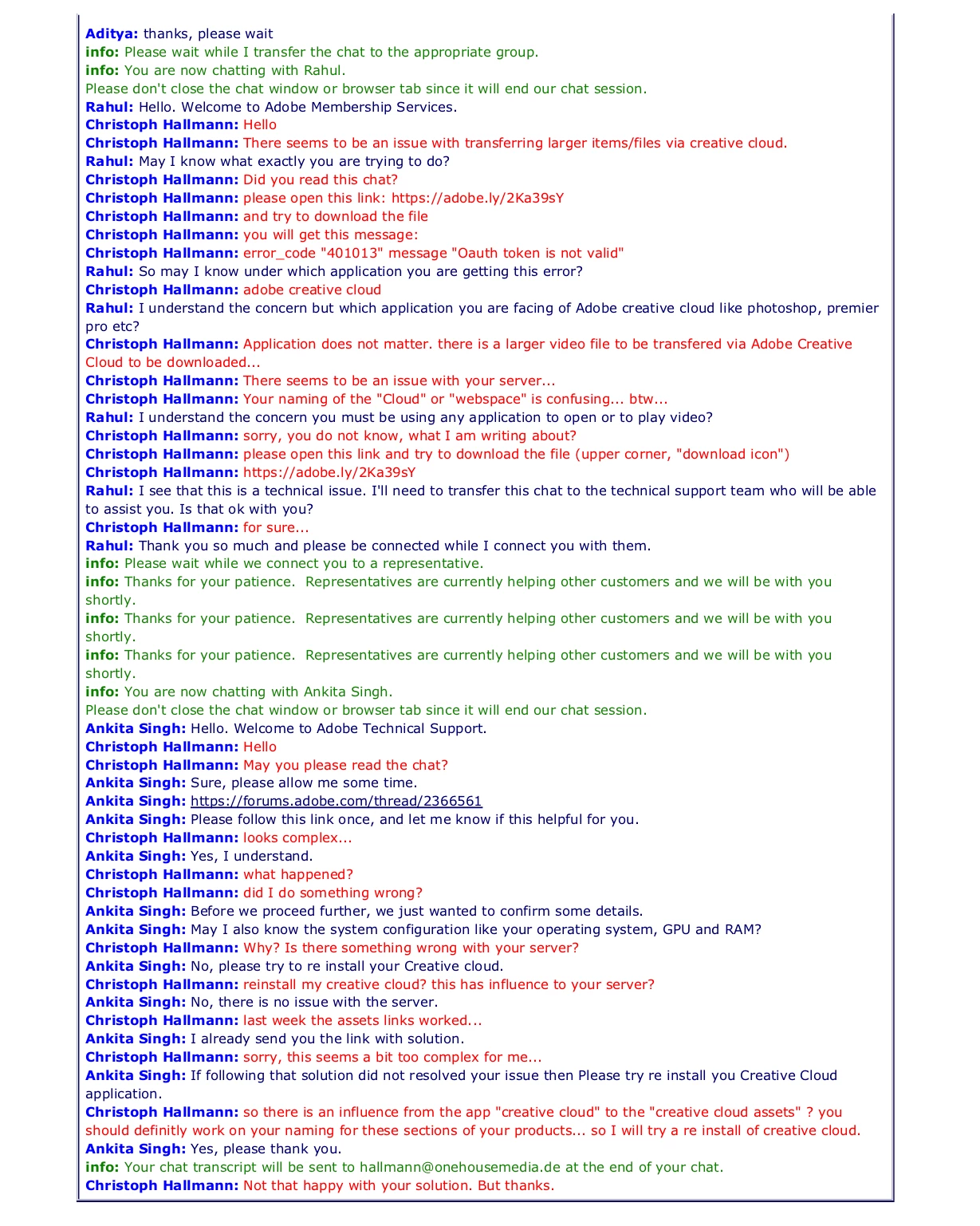 On my work I upload files to client download, to this I use the Creative Cloud. But, after yesterday, some clients are getting the following error when they click on download button: