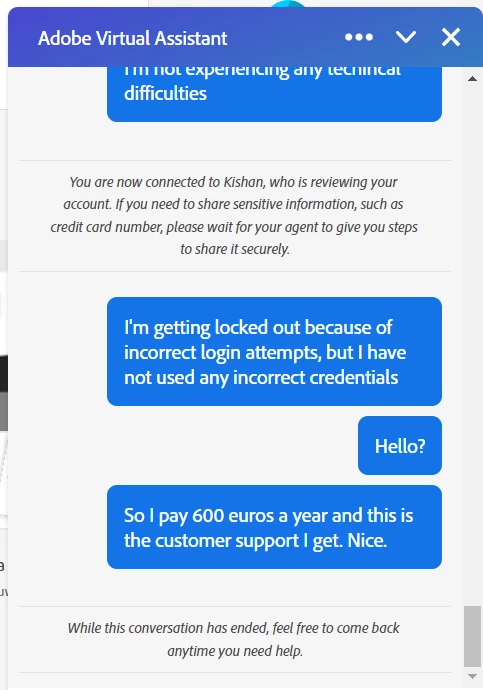 Hey there, I was having some login issues and wanted to ask customer support for help. Kind of absurd this is the kind of support you receive no? I'm hoping by posting here some one else will be able to assist me. (They ended the conversation without offering any support)