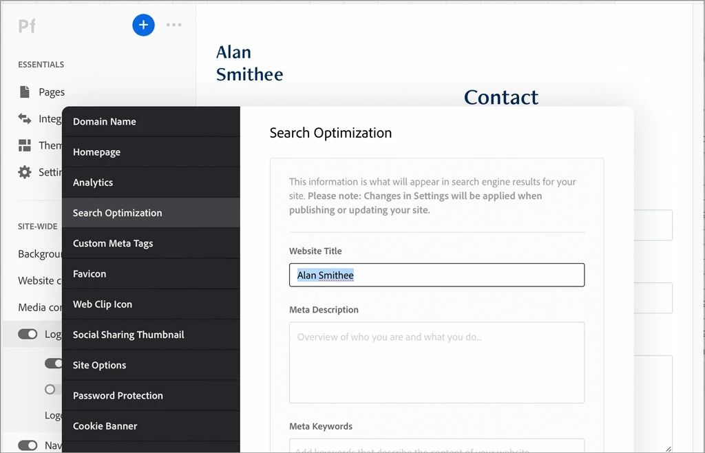 I've created my website through Adobe Portfolio and have an irritating issue. While viewing my website, you can see in the browser tab it says "Nina England" which is my old last name and I cannot figure out how to fix that. I made sure to update my Adobe Creative Cloud Account profile name to reflect my new last name, though this issue still persists. Obviously I'm missing something, does anyone know how I can correct this? It's super annoying when I share my website with people, the thumnail hyperlink also says Nina England, and they ask why. It's embarrassing that I don't know how to correct this.