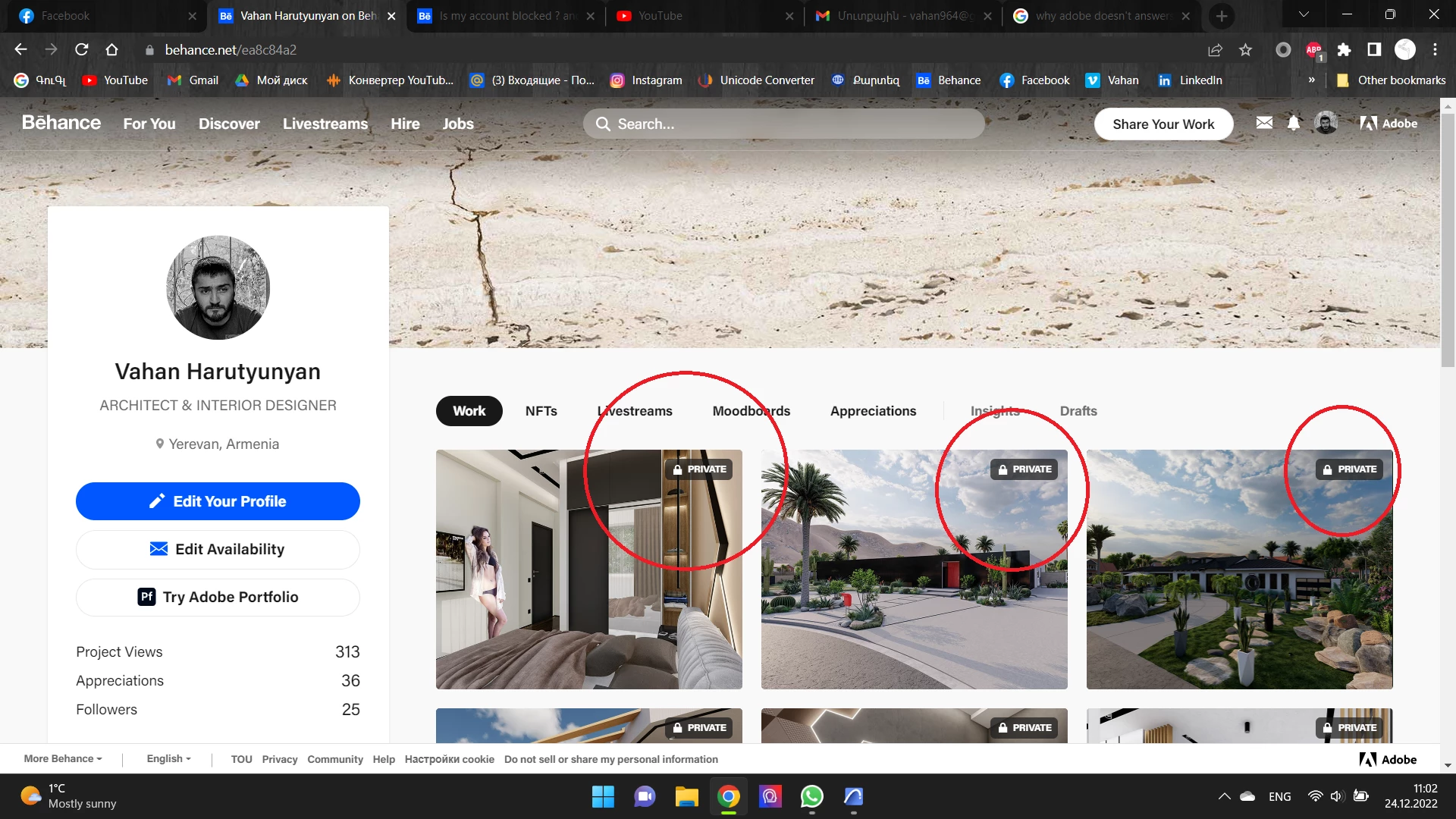 Hi. I want to know why my Behance account doesn't seen for other users and why is my projects are marked as private.  I aded 2 behance help center Requests,  but  6th day that they does not answering me.  i wrote to adobe Customer Care but they couldn't helped me.  Please help me to unlock my behance account.