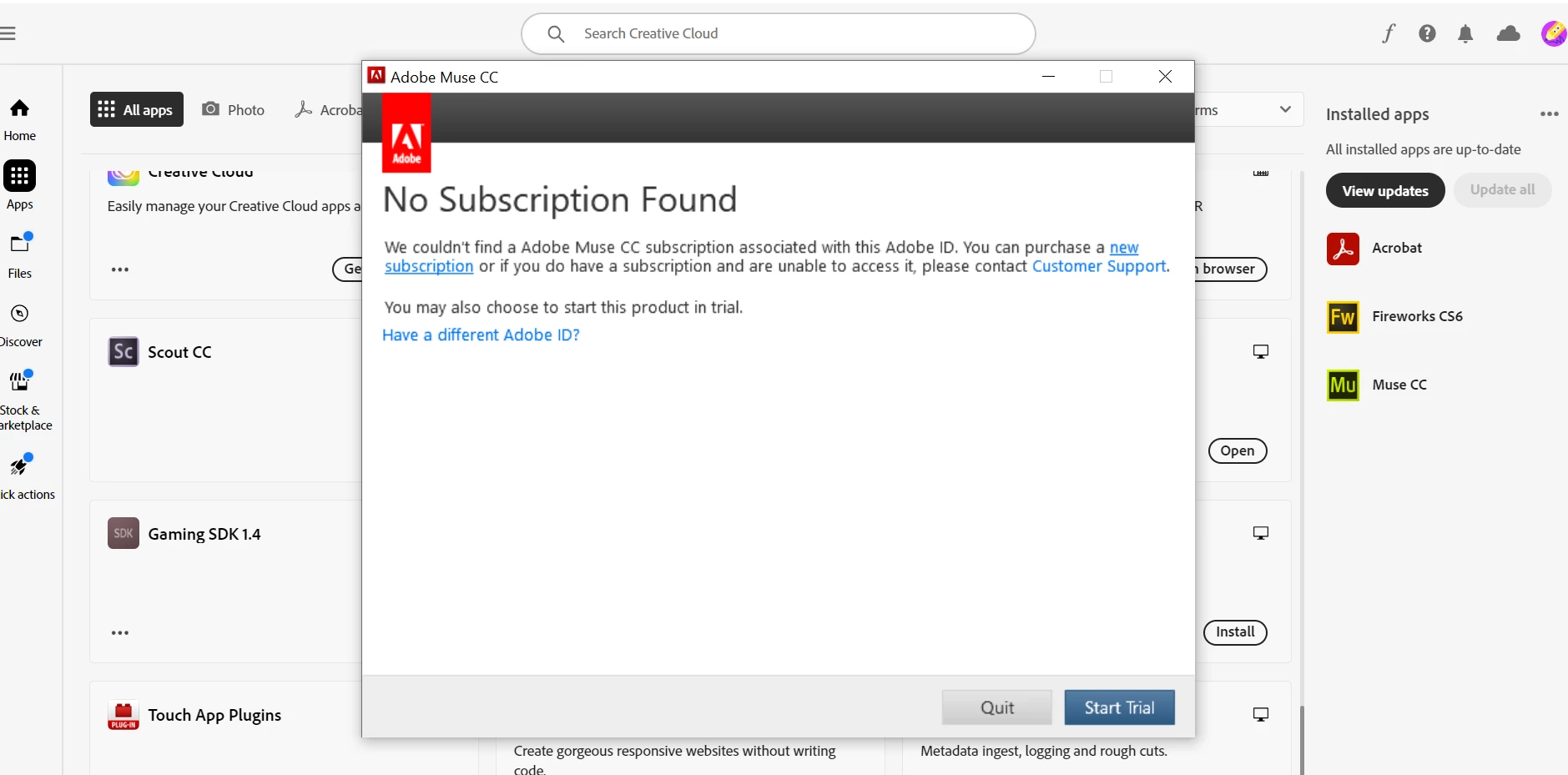 How to download from Creative Cloud AllApps account & bypass the 'trial' versions (Fireworks /Muse)