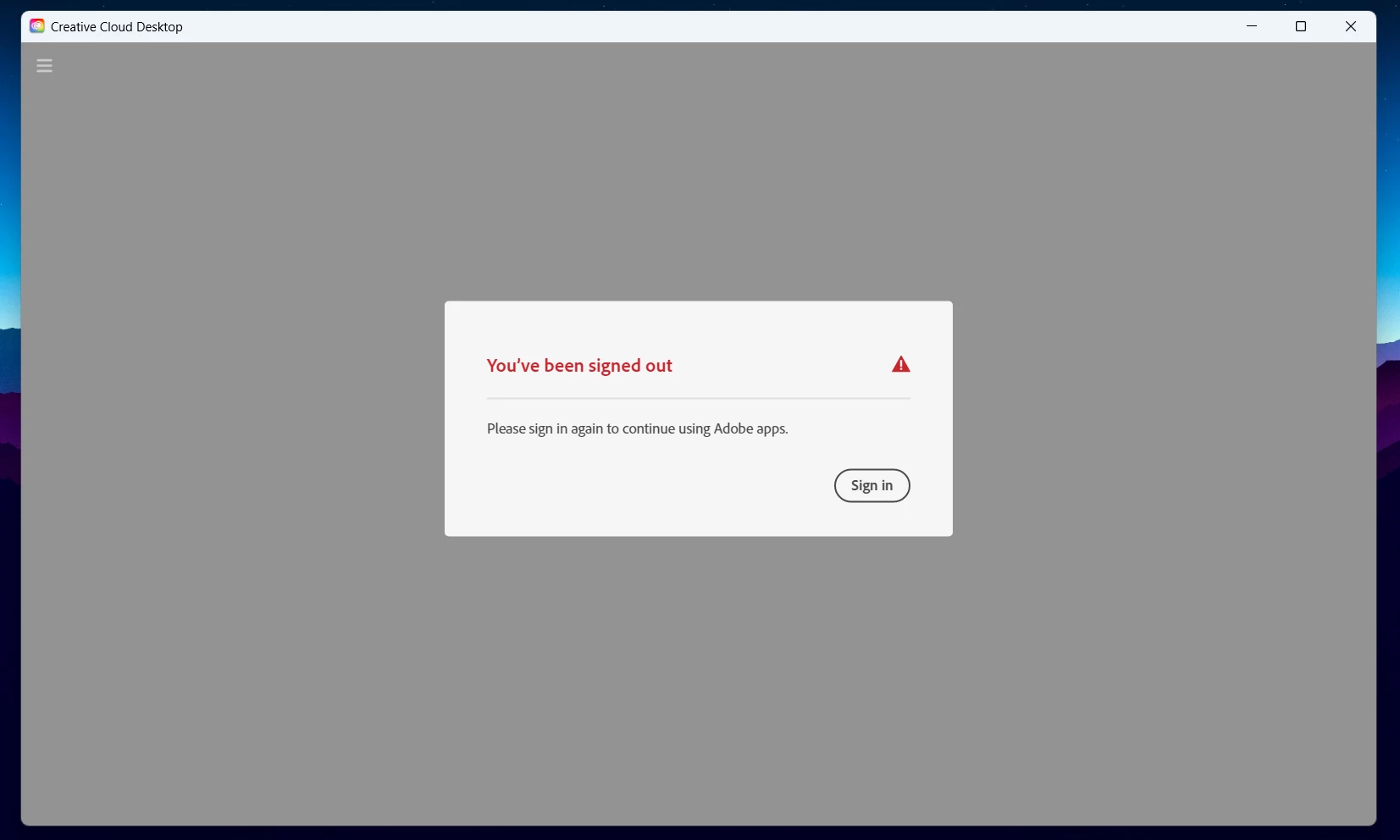 It's driving me insane and also means I can't download any more of the creative cloud apps because I need to be signed in, which I'm not. I am able to access my already-downloaded apps just fine and am logged in to them. My credentials aren't the problem. I don't know how to fix this and can't find an answer anywhere. Help!