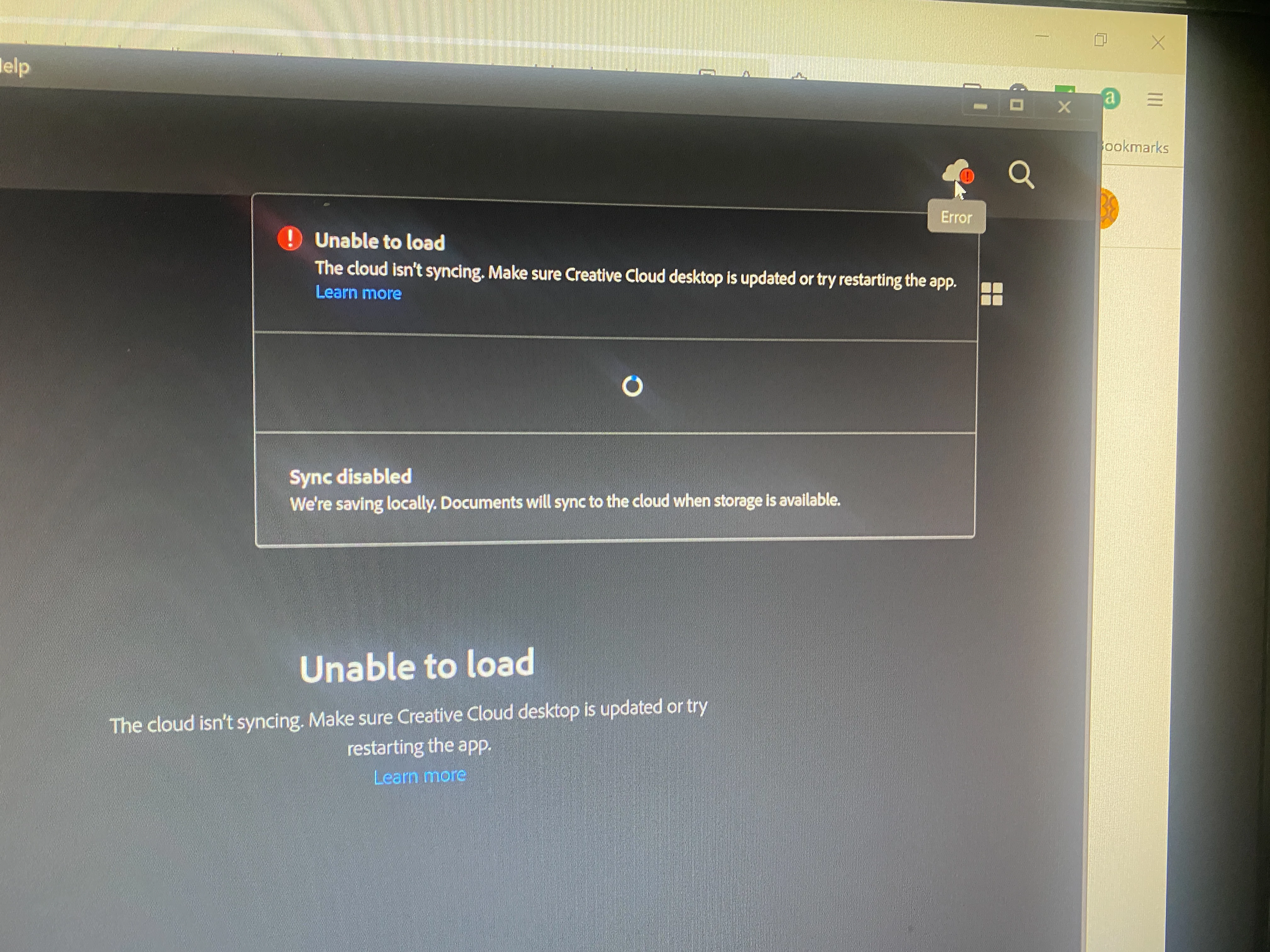 I cannot sync or save to Adobe Cloud
