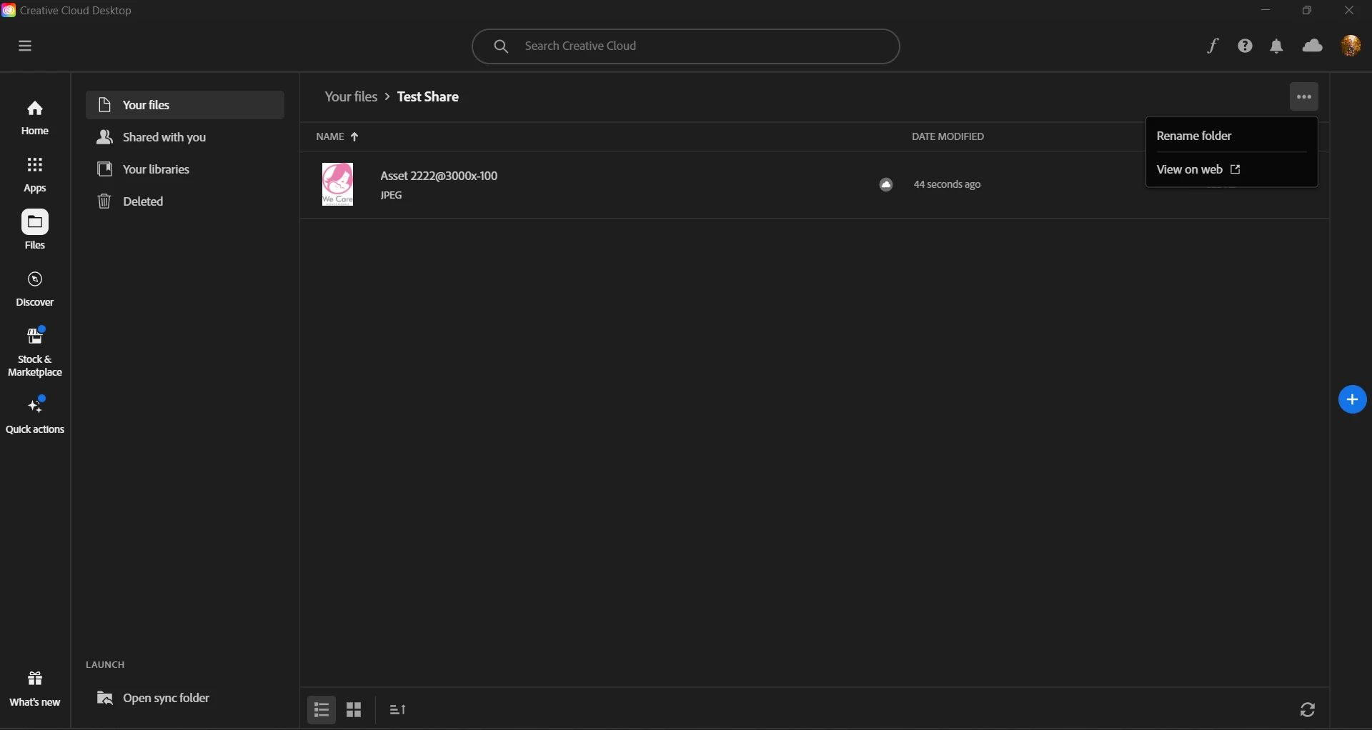 I am trying to send my client some files via Creative Cloud. I have 98% available space on it and when i make a new folder I dont have SHARE or Get link button anywhere.