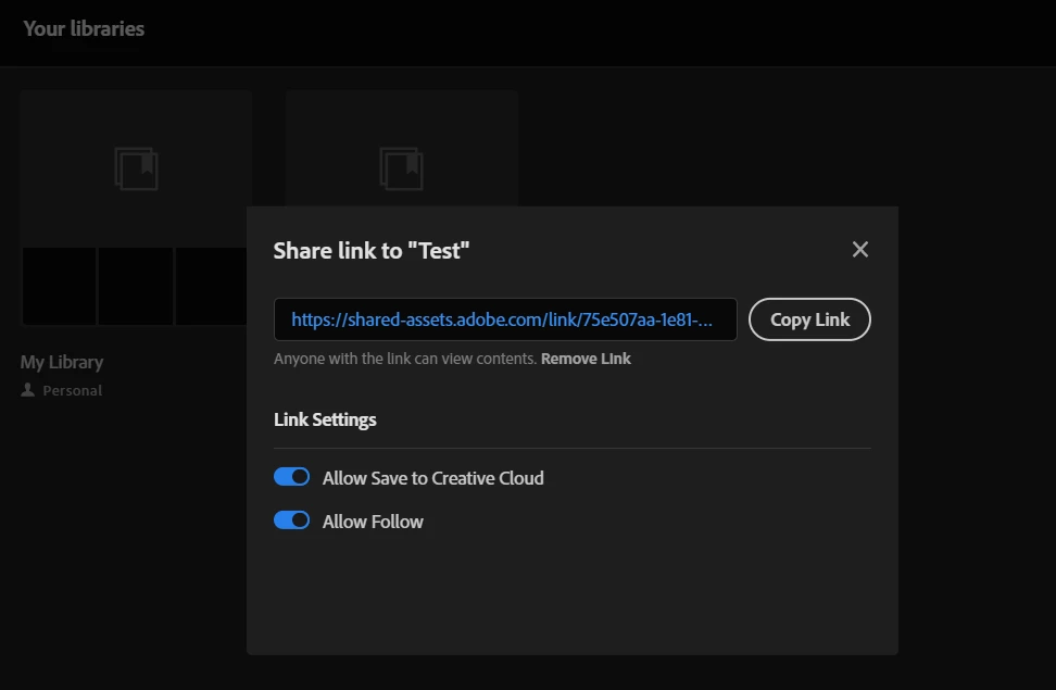 If I make a new library, I have option to Get a link but still, my client can only preview files and is not possible to download them anywhere without Adobe account. Only option available is Copy files and only for adobe accounts.