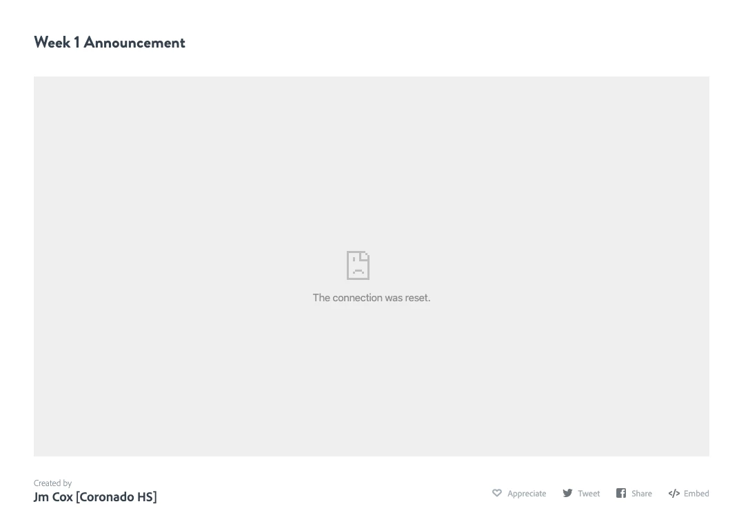 A teacher shared an adobe spark presentation with me but I am not able to see it. It has a blank screen with "the connection was reset." How can I fix this?