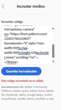 Im trying to embeded a Jotform but i have always an error