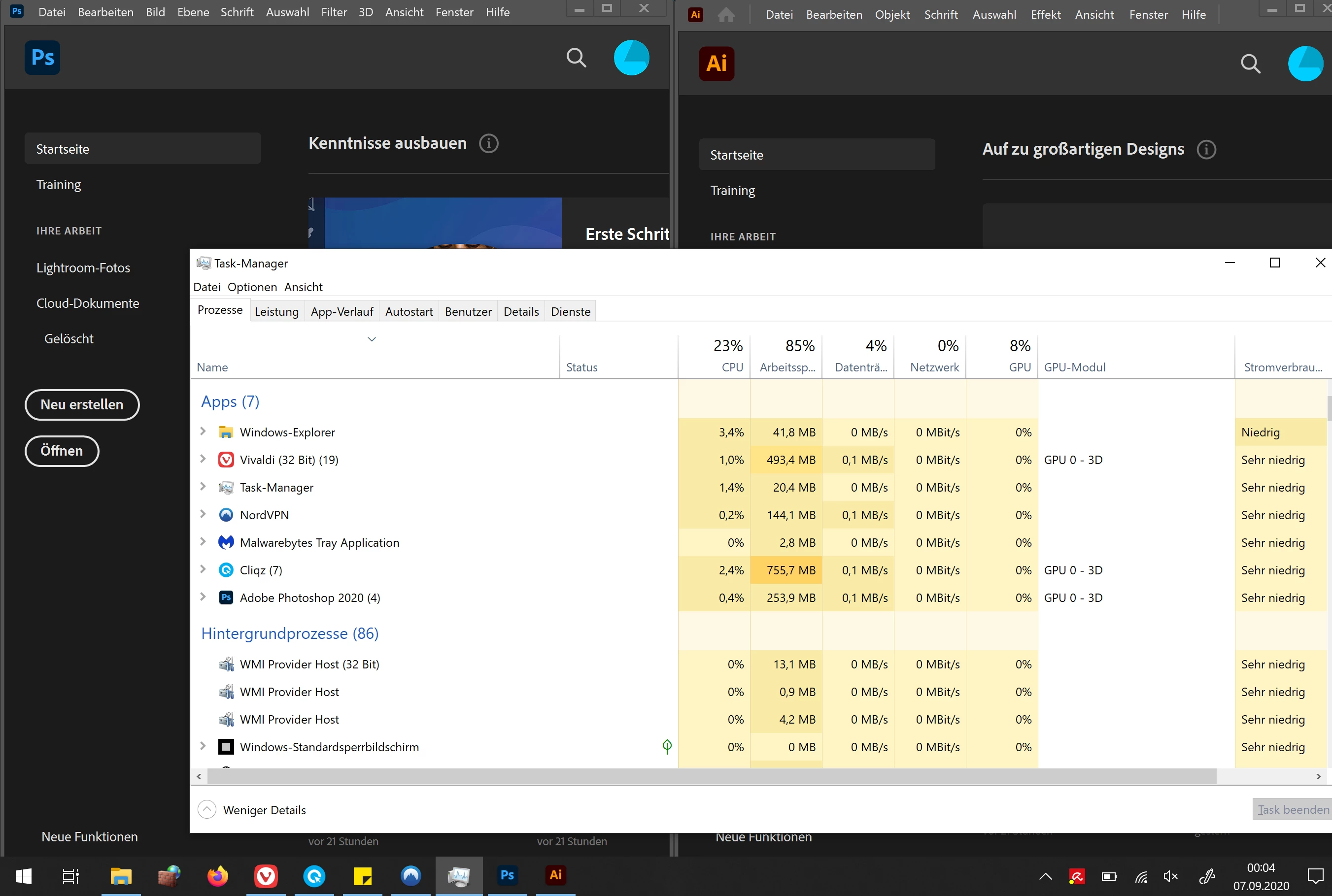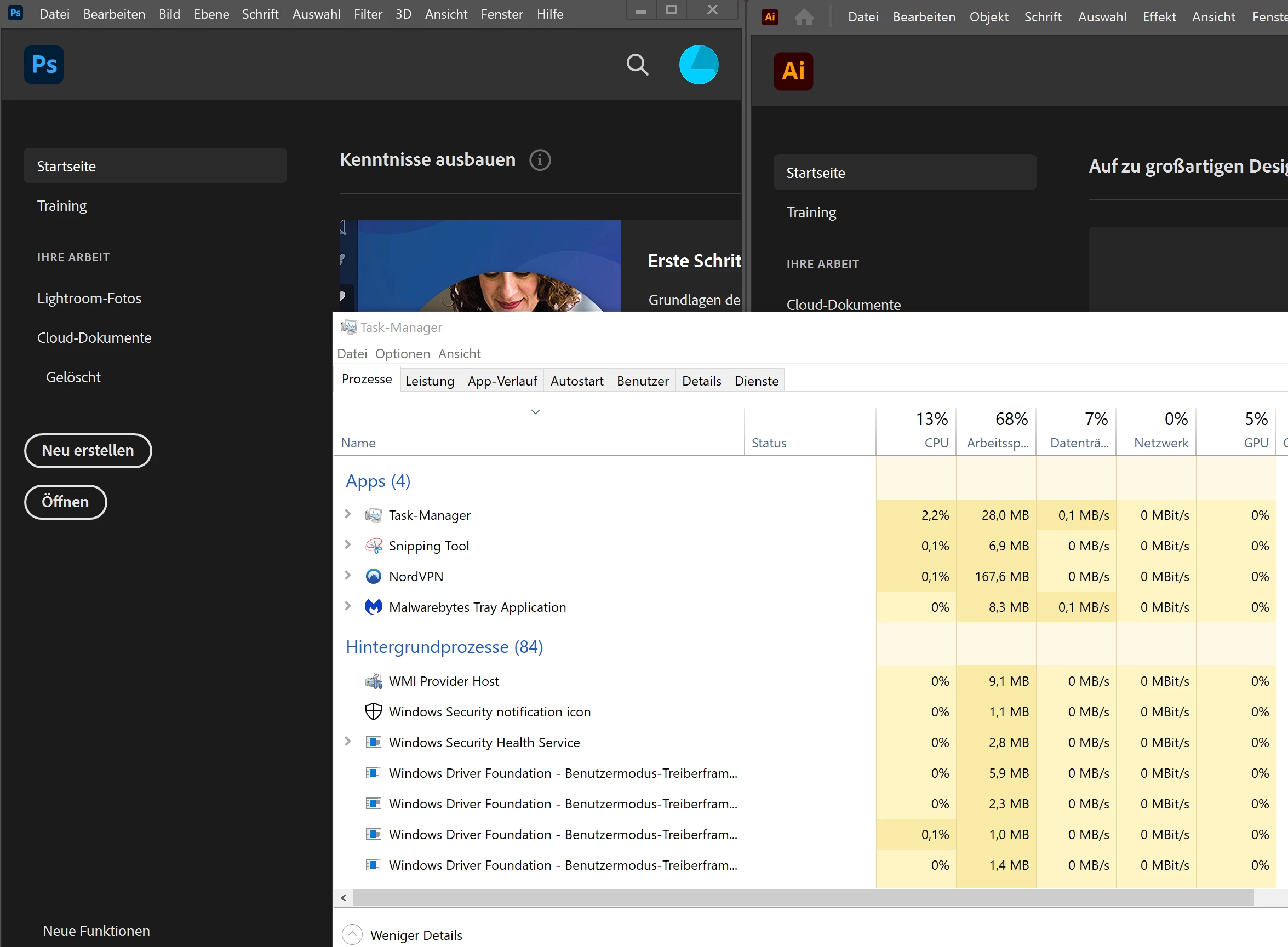 I have the following problem: Adobe programs like Photoshop, Illustrator are started but not listed in the task manager. For this I would have the following questions 1. How can this be? What can I do about it?
