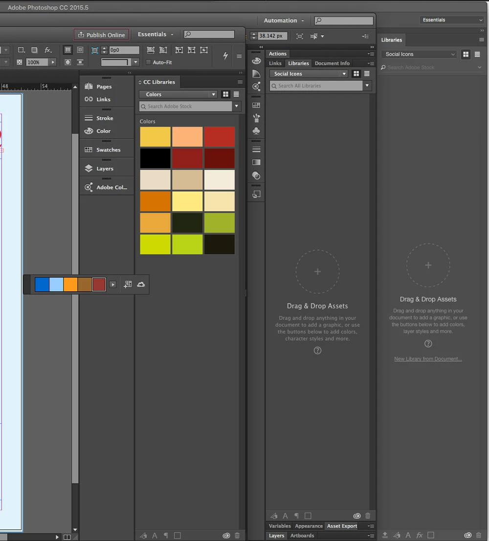 My libraries are no longer accepting or releasing new items. I've uninstalled and reinstalled the programs, plus I've cleared the firewalls and reset permissions.The Libraries window looks normal, but the icons for adding elements are greyed out. If I drag and drop, the window darkens as if accepting the element, then does nothing. If I'm in indesign and try to use the color theme tool's beautiful add to library button, nothing happens. In photoshop, clicking New Library from Document also does nothing. Below is a screen grab of Indesign, Illustrator, and Photoshop open. You can see the greyed out icons. You can also see that they worked once.