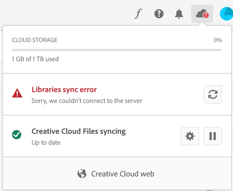 I am getting a an error that my Libraries won't sync. I have clicked on therefresh arrows, signed out of Adobe, signed back in, rebooted, etc. I can't clear this error. What is the problem? I am on Mac OS Ventura 13.5.2