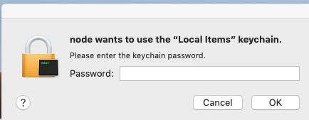 "Adobe_CCXProcess wants to use the Local Items Keychain" or "Node wants to use the Local Items Keychain".