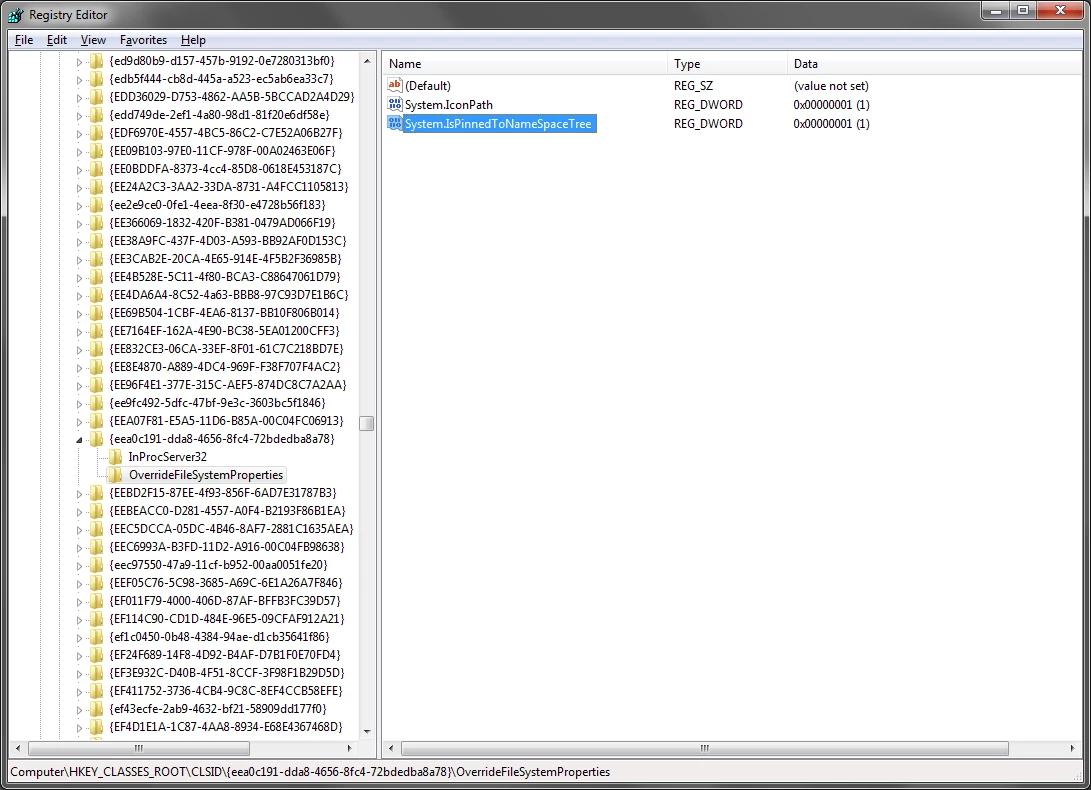 2. Double-click System.IsPinnedToNameSpaceTree and change the value from 1 to 0