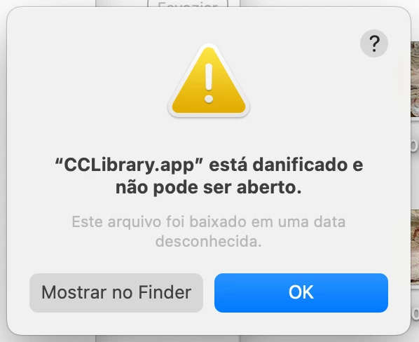“CCLibrary.app” está danificado e não pode ser aberto.