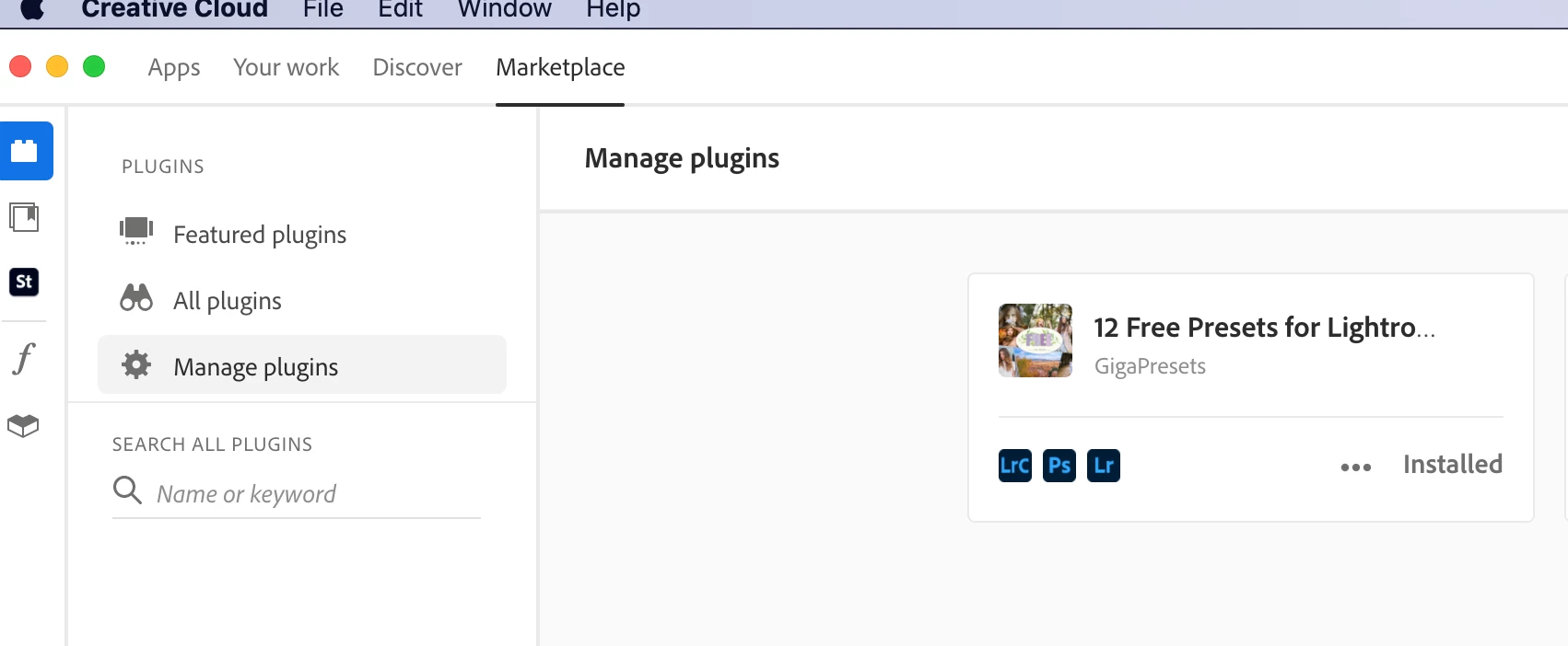 Marketplace tab missing from Creative Cloud Desktop Windows