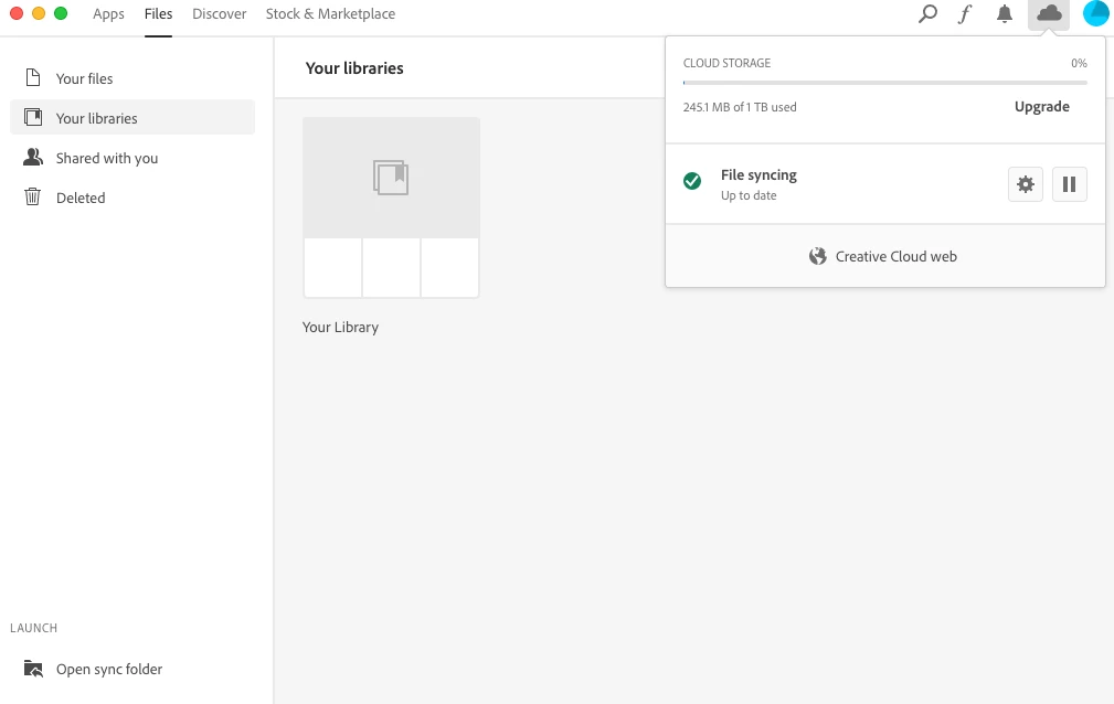 But I am surprised that I do not see the image in the Creative Cloud app on my Macbook. I checked Your files and Your Libraries, and both folder are empty. When I click on Cloud icon next to Profile icon, it says Cloud Storage 35 MB of 1 TB used, so that the image must be there. Why the file is not visible ?