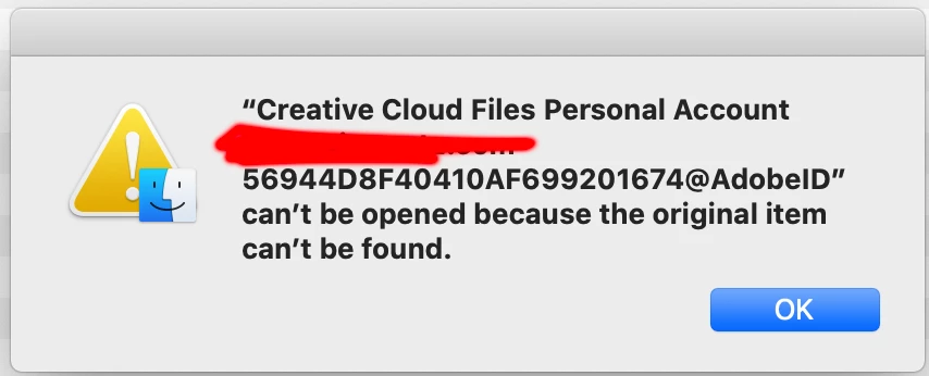 This dialog appears whenever I search for Creative Cloud Files Personal Account items. Can someone tell me how and where to restore my so-called "original item"?