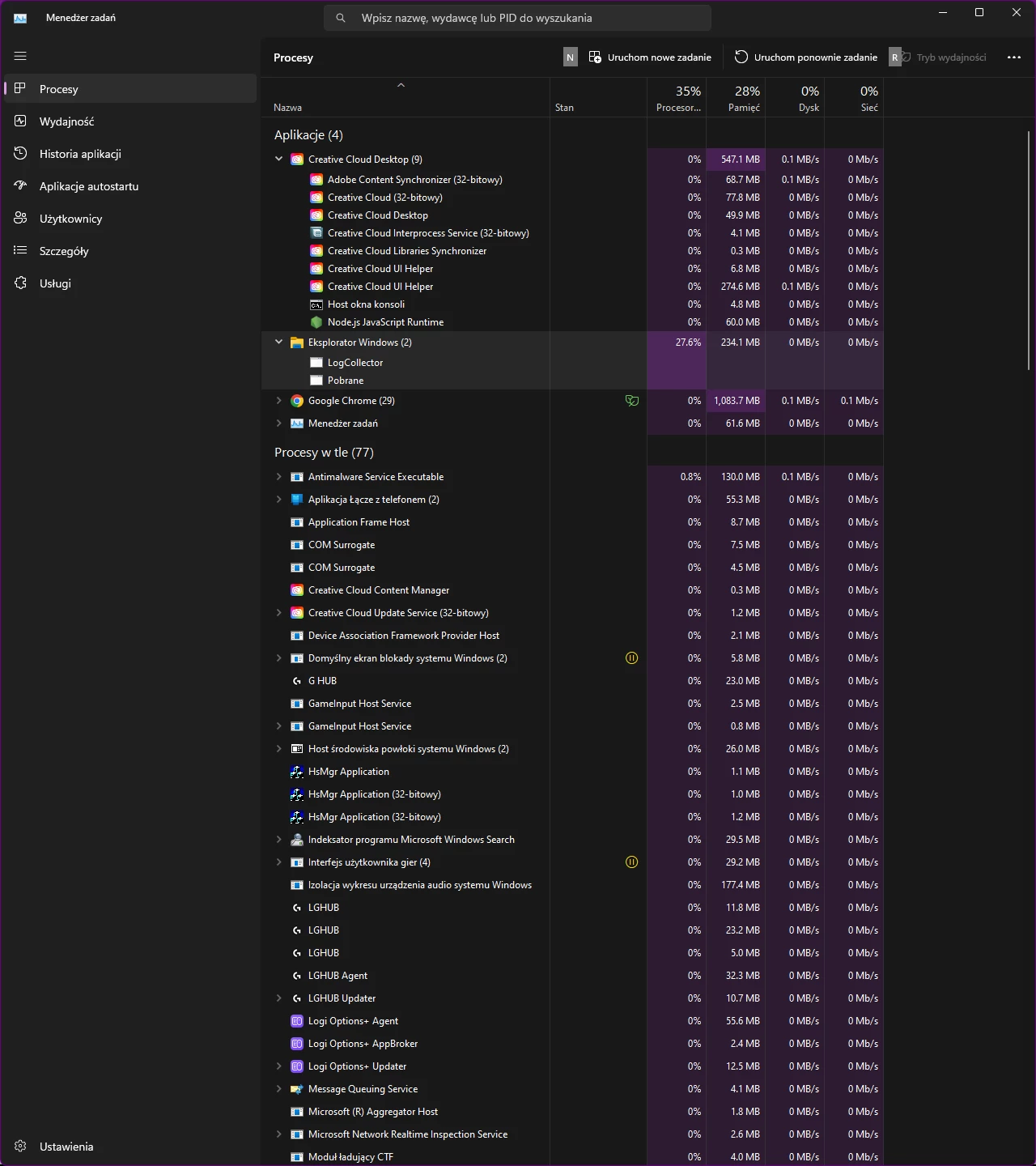 Creative Cloud UI Helper and probably Adobe Content Synchronizer - How is the system being affected - CPU, RAM, or Energy use?
