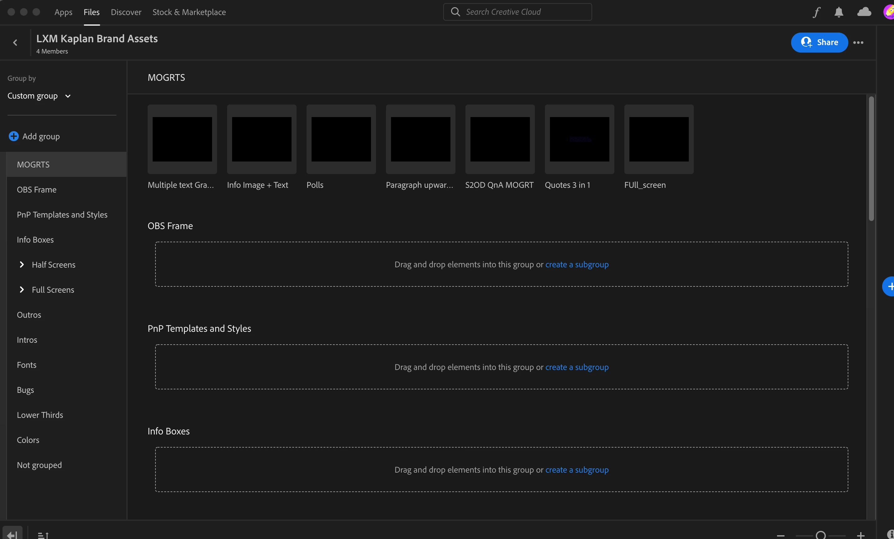 Attached are a picture of what I see in the library and what my teammate sees in the library at the same time. They uploaded the added MOGRT files, but I can't see them.