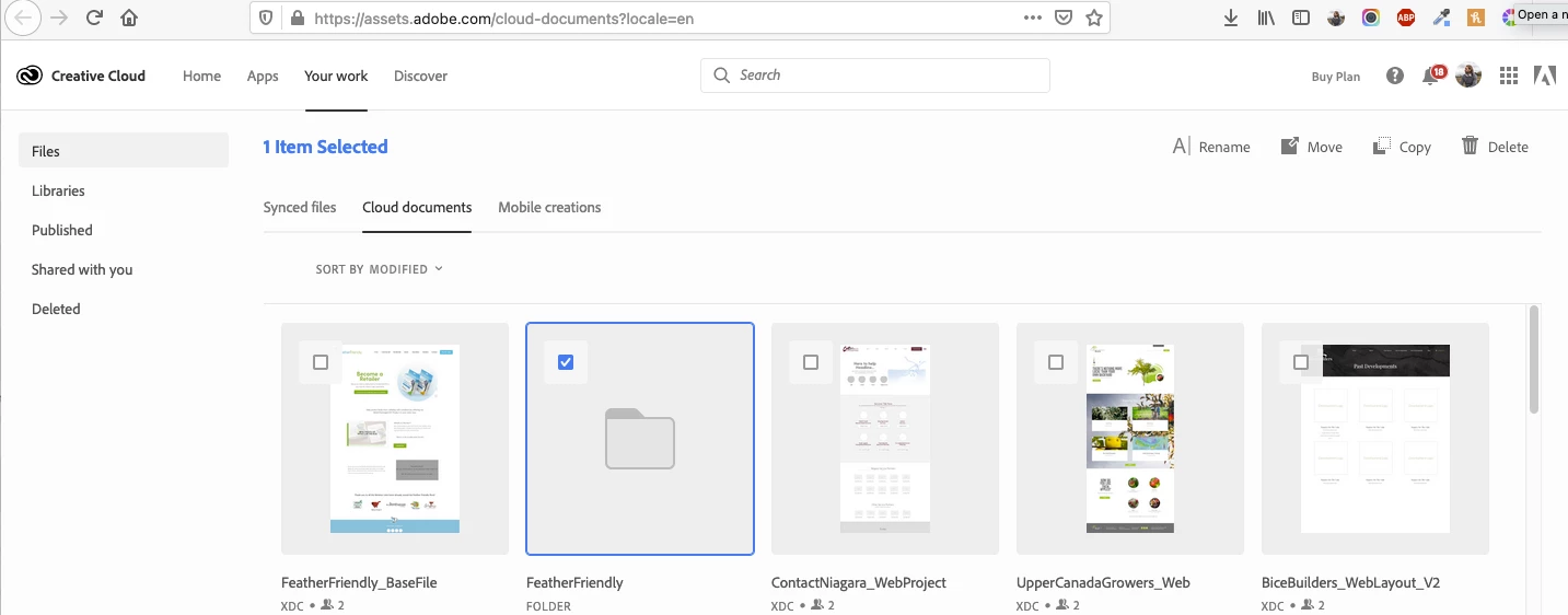 Exploring saving all of our files and folder to the cloud. In reading all of the instructions, it seems you go to the cloud site, Select the Your Work Tab, Select the Folder you want to share, however for me there is no option to share. The options I have are rename, move, copy, delete.