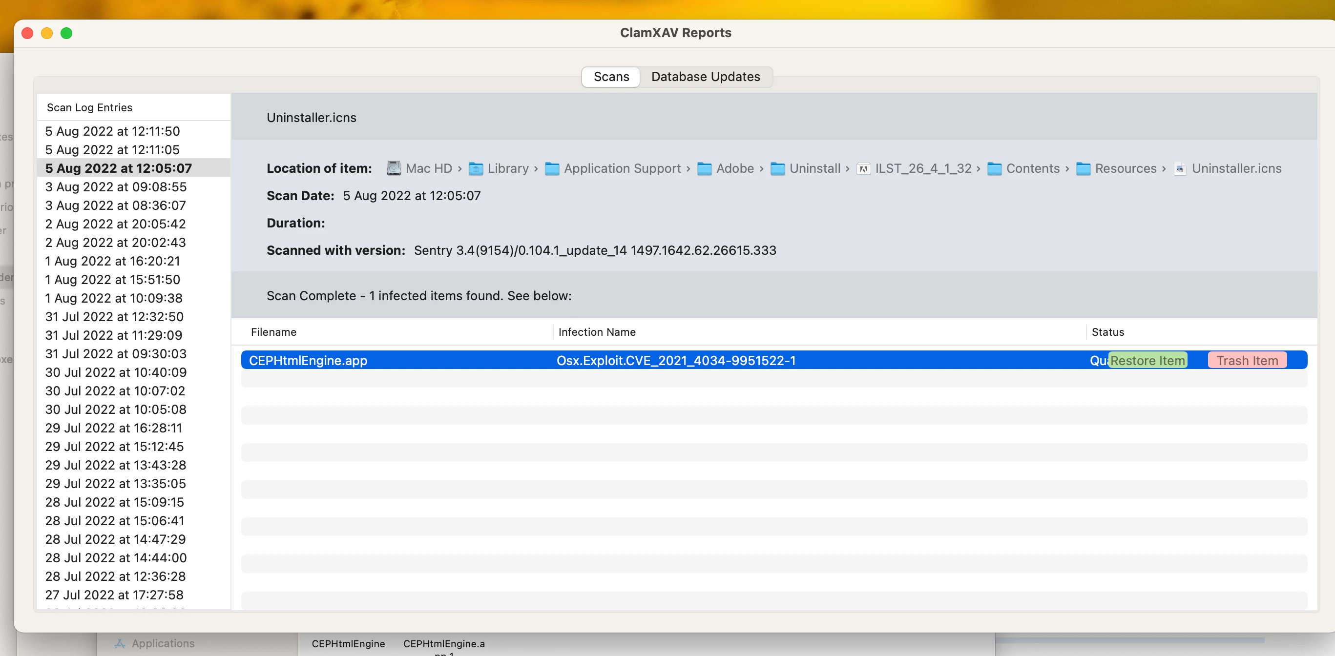 Hello, during my genuine update of illustrator my antivirus ClamXav found a Osx.Exploit.CVE_2021_4034-9951522-1 inside the installer file CEPHtmlEngine.app.
