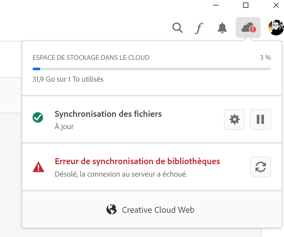 It's fine for Files, but for libraries CreativeCloud Desktop app signals that there is some issues to connect to servers...