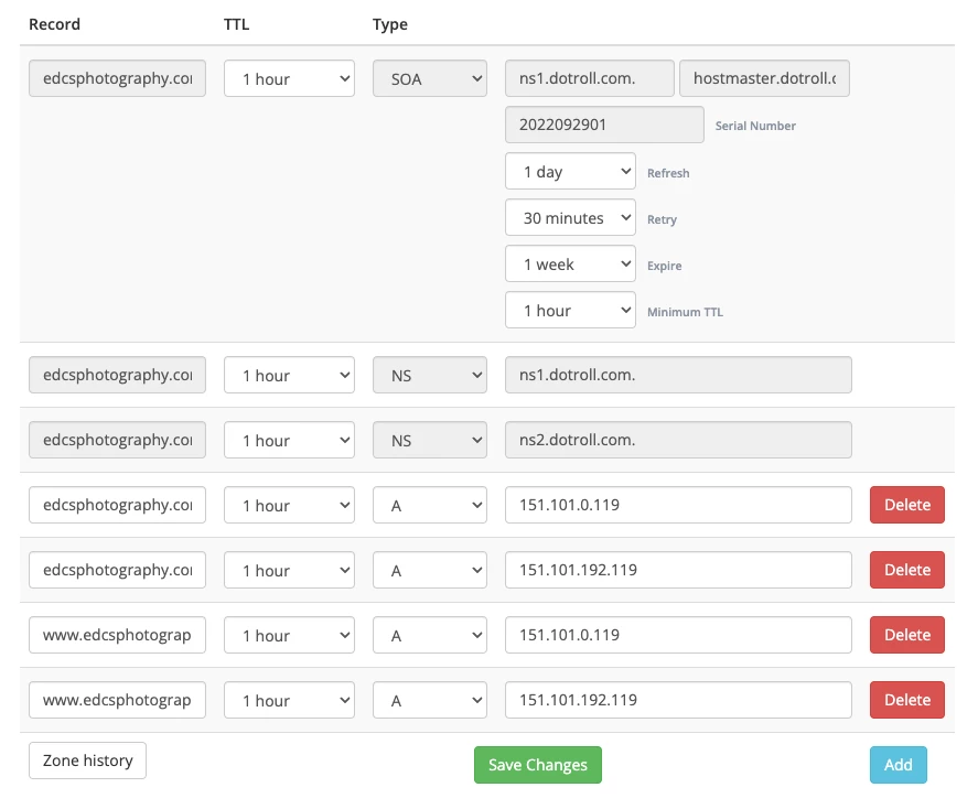 The DNS settings adobe gives are set exactly the way adobe provides them and they are the same as I see at whatsmydns.net. see also screen attached for the full settings: