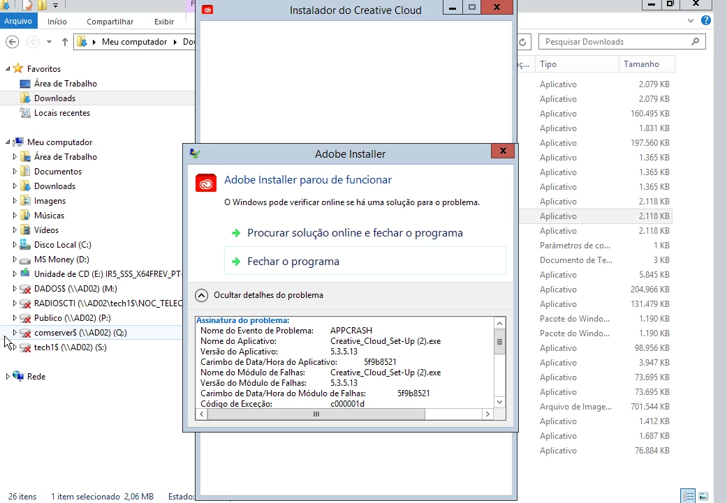 Problem installing Creative Cloud when running the .exe shows error.