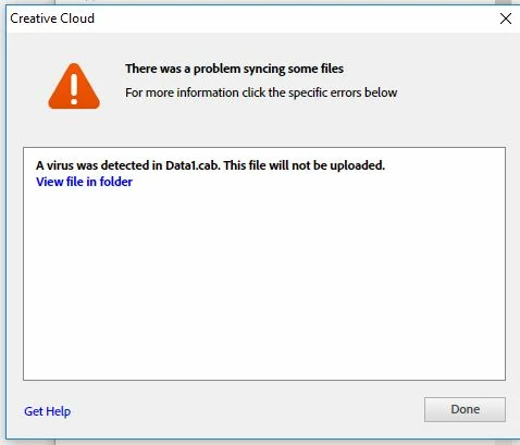 Problem Syncing Files in Creative Cloud (Virus Notification)