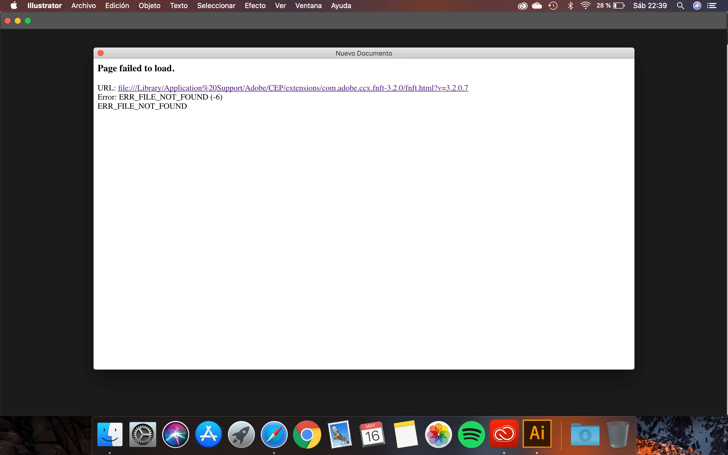Necesito su ayuda antes de entrar en deseperación. Estoy teniendo problemas con todas las apps de Adobe CC. A continuación les dejo una imagen del mensaje que me sale al inicial cada aplicación (la foto es de Illustrator pero me pasa con todas las demás apps):
