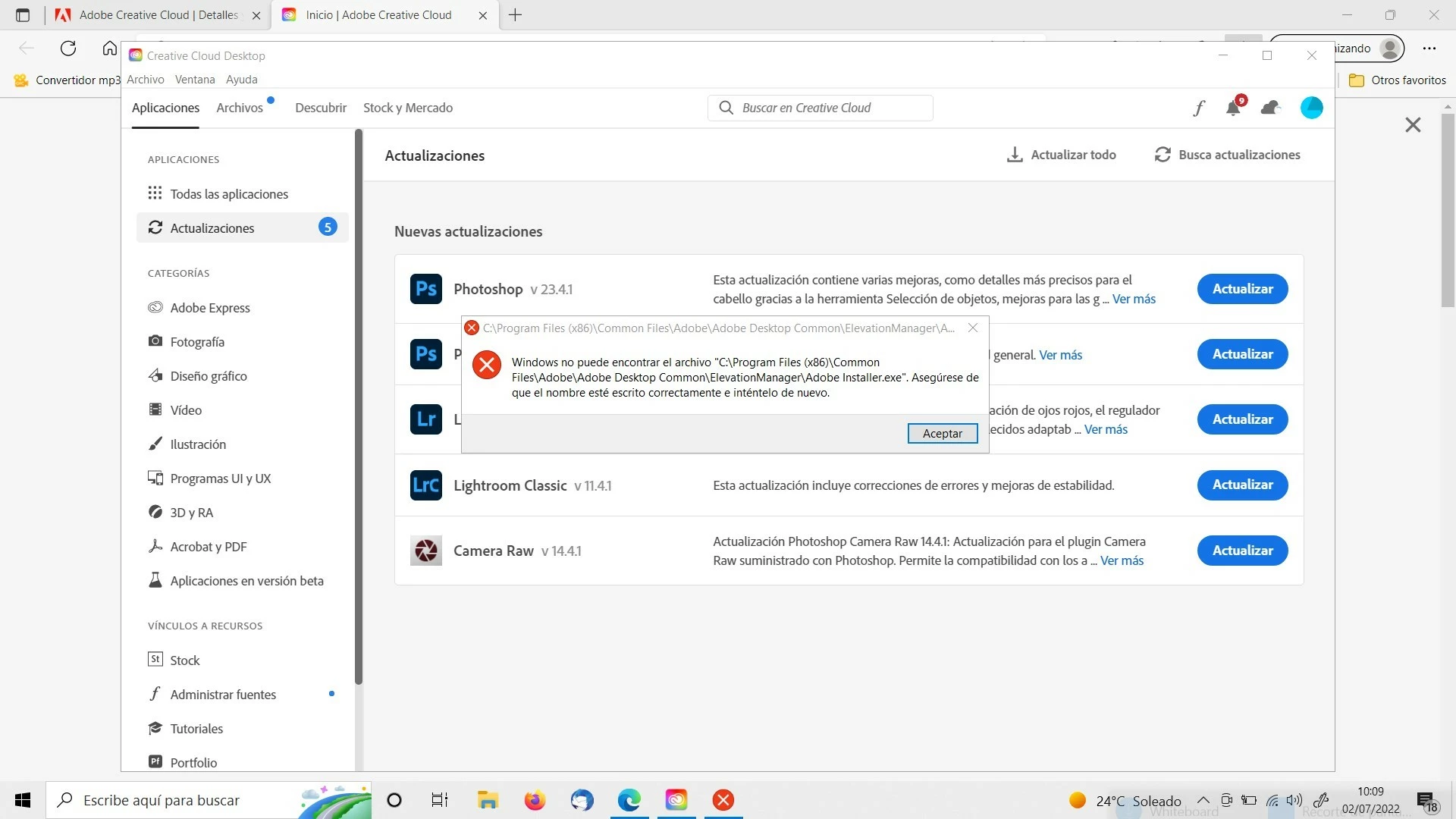 Problemas actualización con Adobe creative cloud