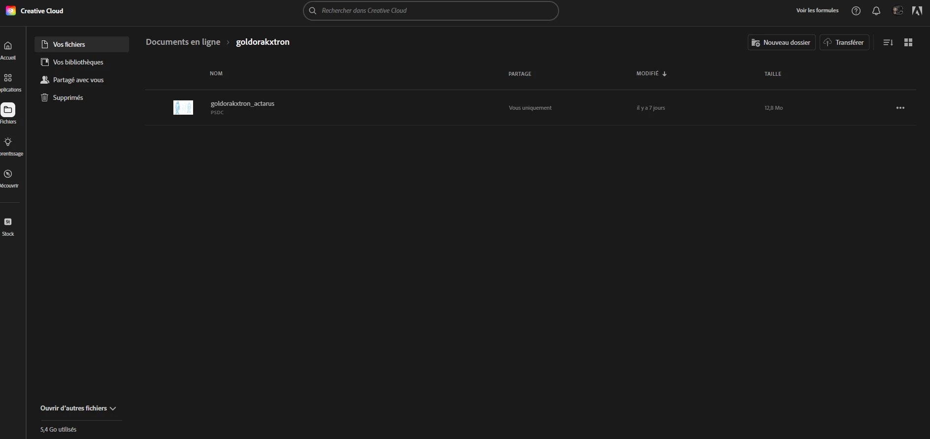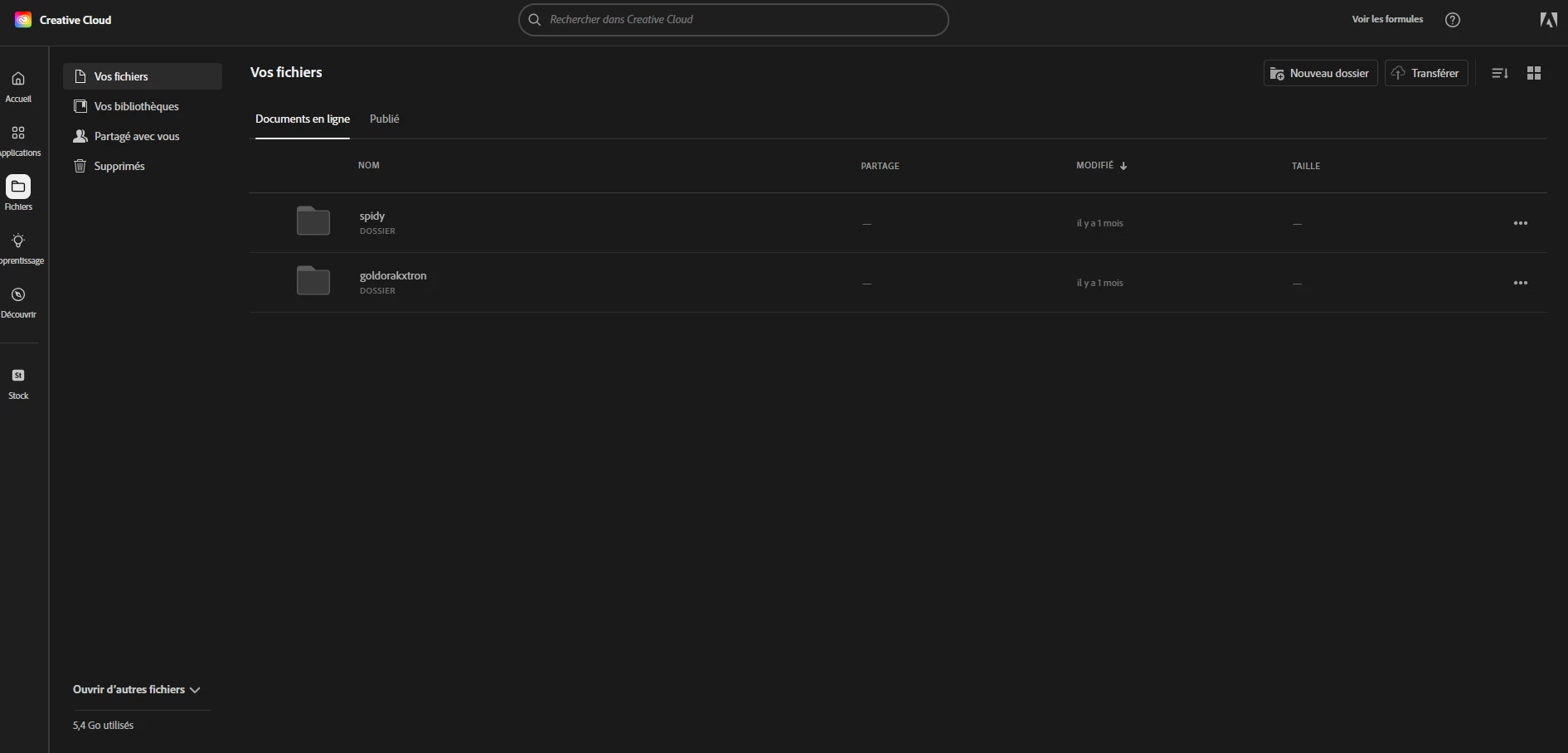 Bonjour à tous, je rencontre un probléme sur créative cloud, il m'indique que j'ai 5 go d'utilisé sur mon stockage de 105 go alors que j'ai que 2 dossiers de plusieurs psd qui font 123 mo et 12 mo et je n'arrive pas pas avoir de l'aide de la part du sav adobe car à chaque fois ils ne sont pas capable de me répondre ou de me proposer de m'aider à récupérer mes go manquant.