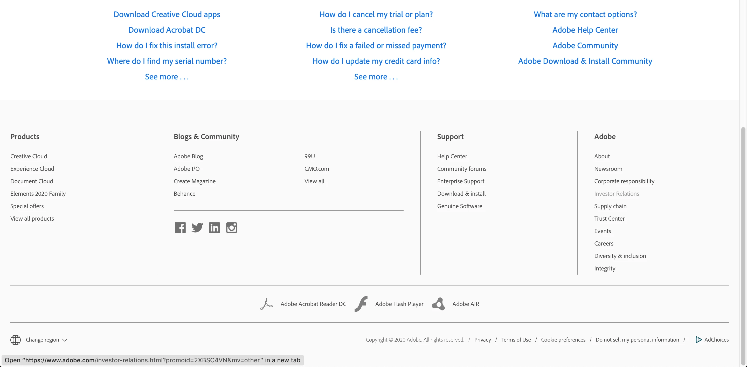 1. Visit https://helpx.adobe.com/ca/support.html