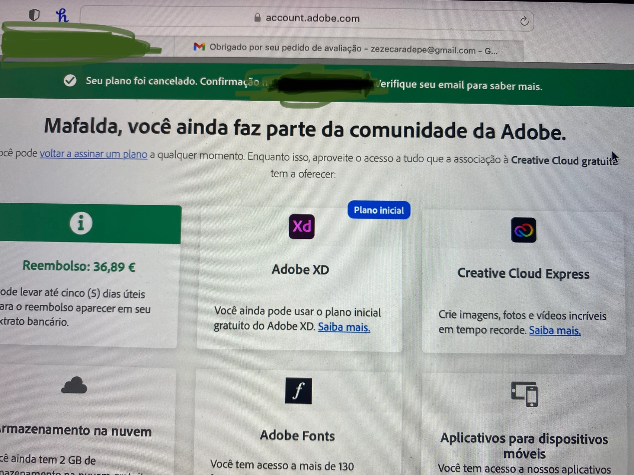 Comprei o indesign, plano mensal de 36,89€ no dia 14 de junho depois das 14h, cancelei hoje, dia 29 de junho às 10h e pouco. Eu sei que só reembolsa se tivere dentro dos 14 dias, gostaria de saber se acham que ainda está, devido às horas. Só faz 15 dias se passasse das 14h e ta, certo? como cancelei horas antes de fazer 15 dias... Pelo menos quando cancelei apareceu-me que o concelamento foi confirmado e número, e em baixo dizia reembolso total 36,89€ dnetro de 5 dias úteis. Gostaria de saber se realmente vou receber, ou se aparece isso automáticamente independentemente do processo. Obrigado.