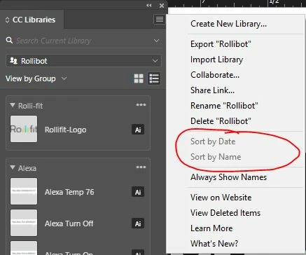 Can you sort the graphic list when performing the relink to cc library? Everytime i have to go through my long list of graphics in my cc library to get what I need. It would be nice if i can sort it alphabetically.