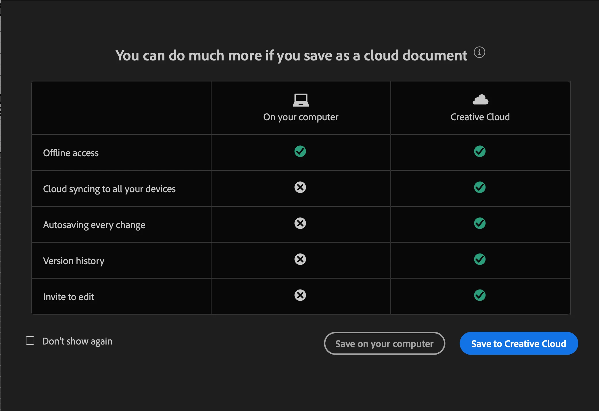 I'm having a hard time deciding which of the options I should use. I would like my files to be stored in the adobe cloud but I also like them on my imac so i can access easily. Which options do I choose? I have found that since I'm not consistent with my choice I sometimes can't find the file I worked on or I save the file twice, once with the change and once without. Any ideas on how I should set things up and maybe on how I can clean my mess? Thanks so much!