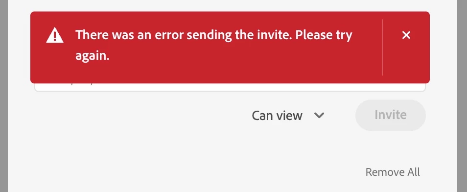 Shared folder error "There was an error sending the invite. Please try again." for some users