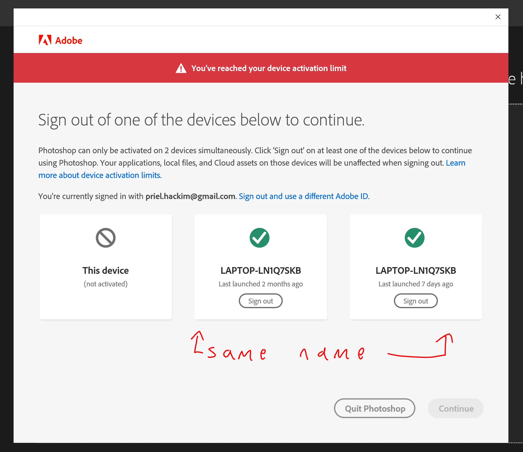 it seems that CC tagded my new computer as 2 different ones with the Same name: