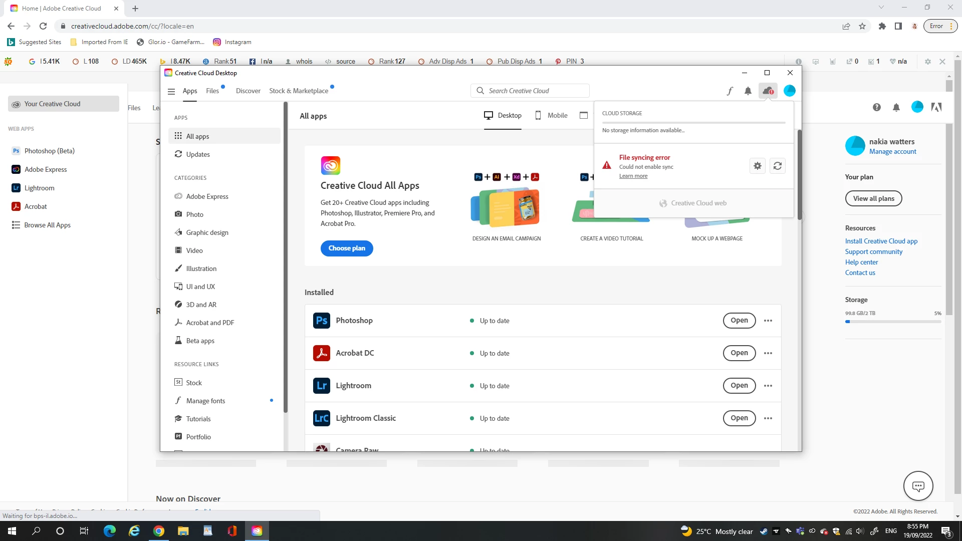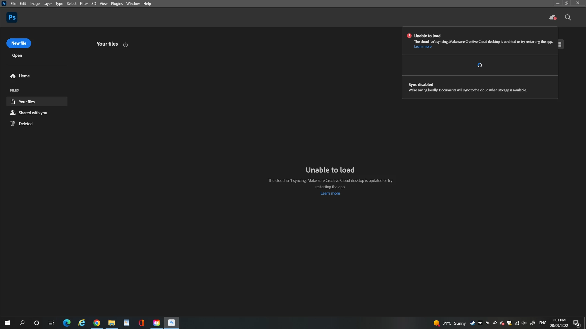 Sync error for Creative cloud, sync error says sync disabled due to saving locally