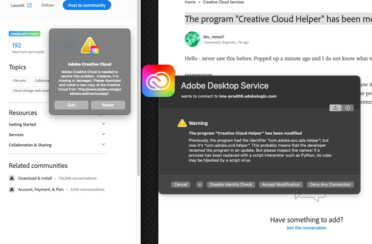 Previously, the program had the identifier “com.adobe.acc.ads.helper”, but now it’s “com.adobe.ccd.helper”. This probably means that the developer renamed the program in an update. But please inspect the names! If a process has been replaced with a script interpreter such as Python, its rules may be hijacked by a script virus.