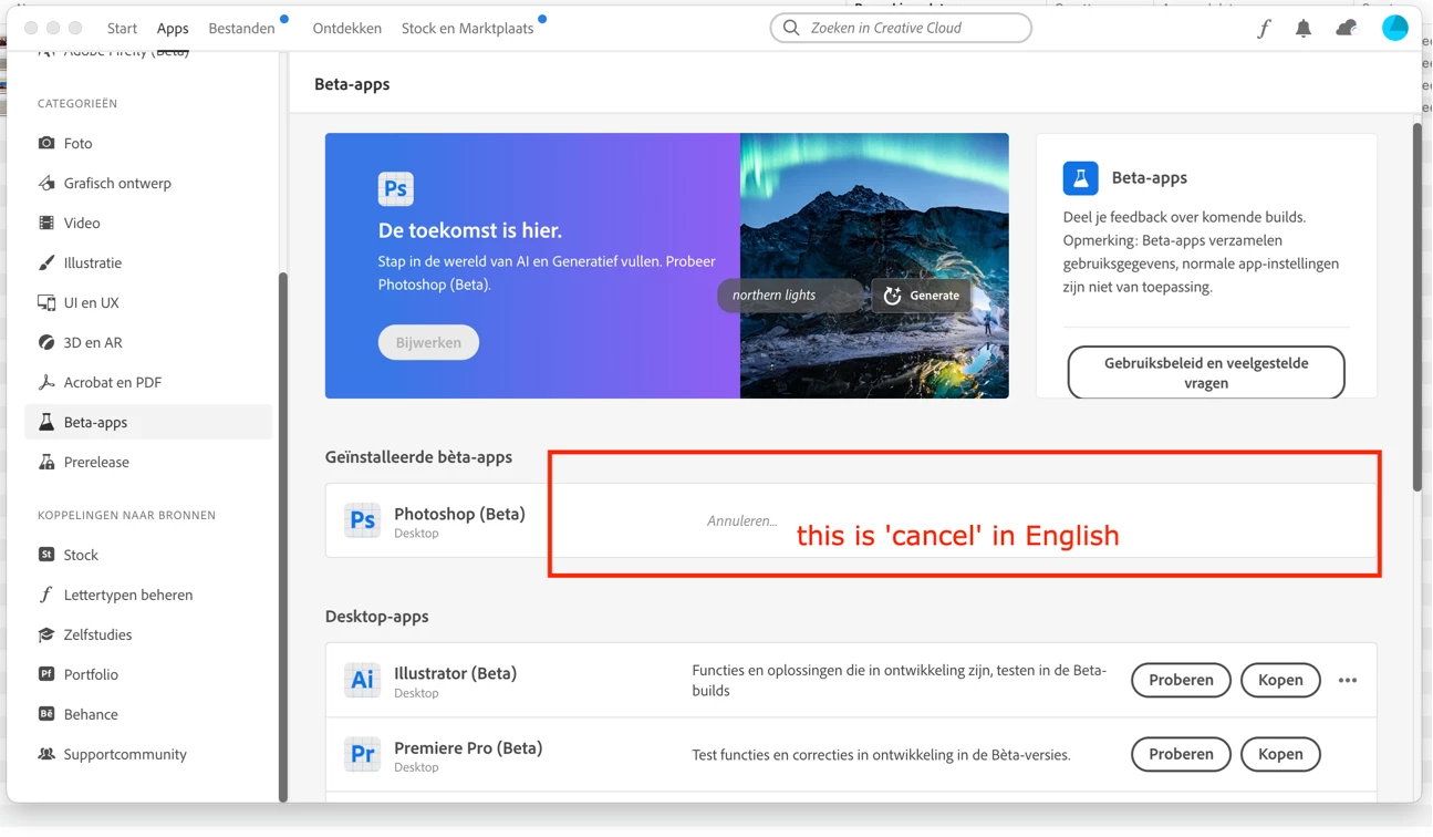 I wanted to update an app but the status stays on ' cancel' . See picture. I even deleted the app manually. Doesn't work. I like to install the newest versiof of the app, but how?