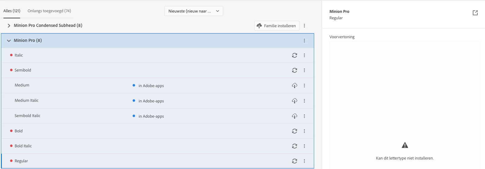 I have trouble with Minion Pro Regular. I've been on vacation for a week and on my return I have problems with this font.