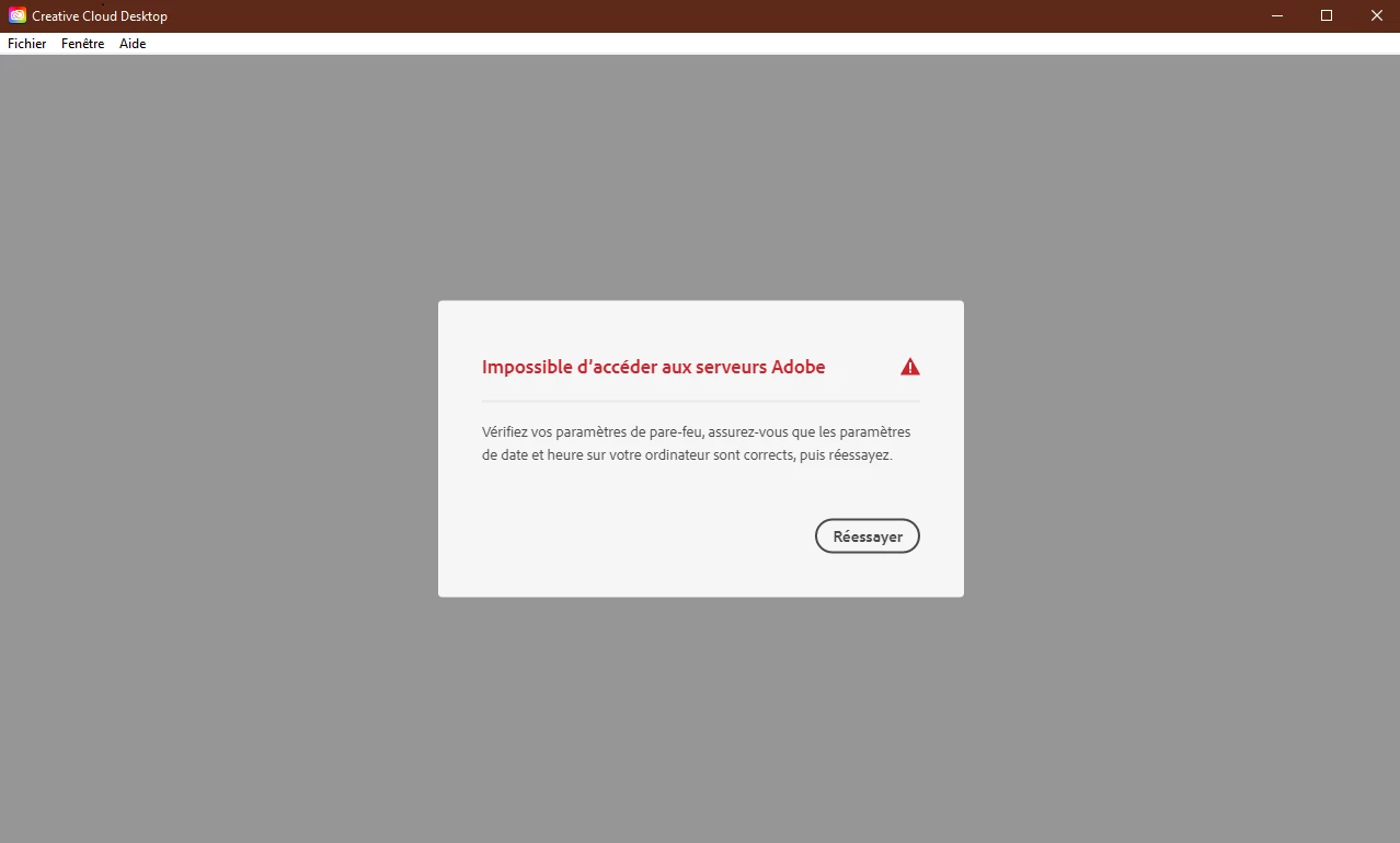 Hello, I wanted to enter the Adobe Creative Cloud from the application on my desktop, like every day and I get this message: