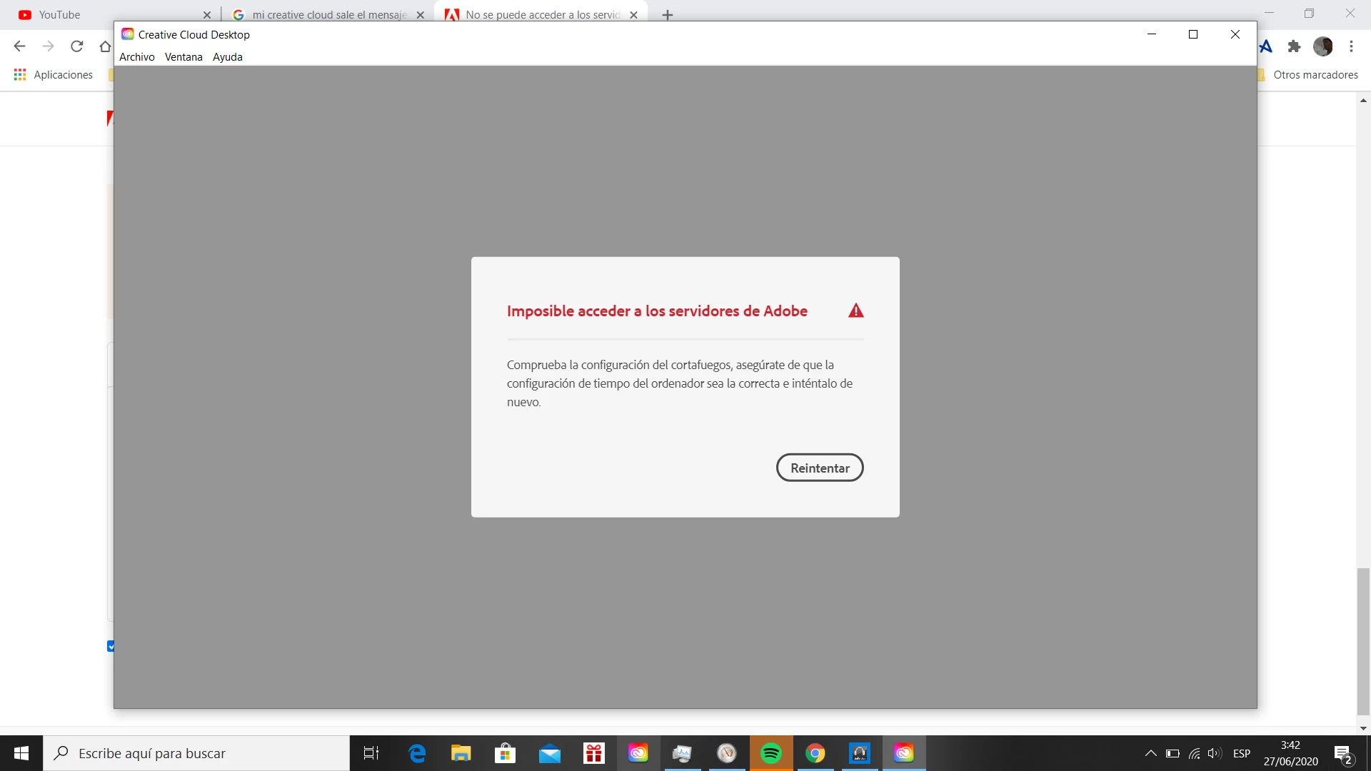 Imposible acceder a los servidores de Adobe