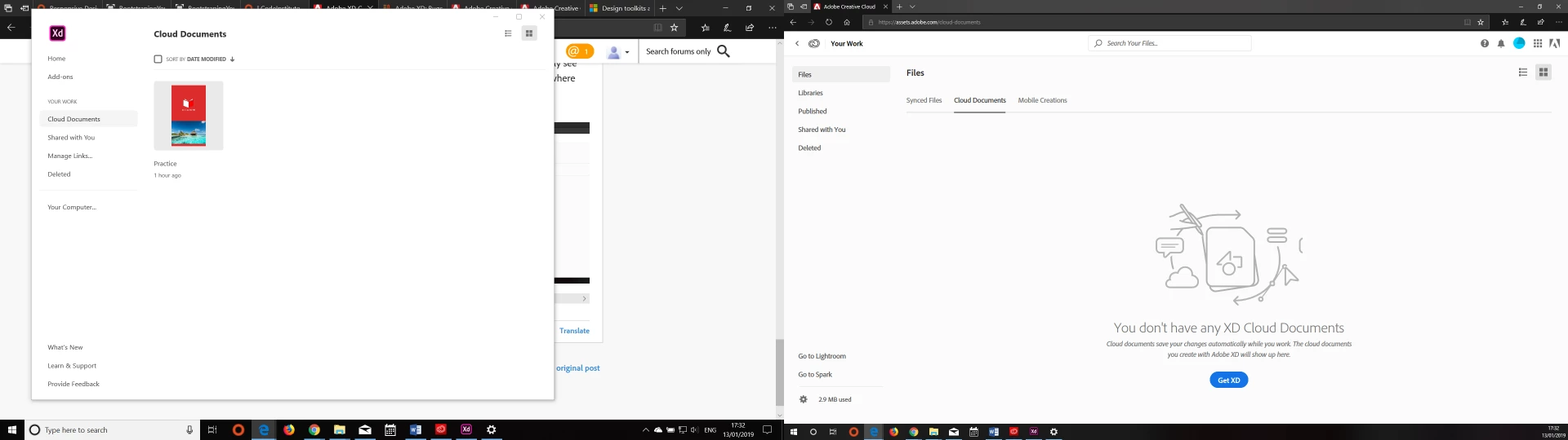 I am unable to view cloud documents in mobile app, when I am in the web browser I can only see the file in the synced folder and not in the cloud documents folder. The documents show as being in the cloud documents folder when saved as .xd in cloud documents on the desktop app. I have creative cloud, mobile XD app and desktop XD app all linked through same account. I am getting nowhere with the help docs or forum discussions, I have spent a great deal of time on this now. I have sent messages to the Adobe Staff however haven't as yet heard anything back at all. Please help.