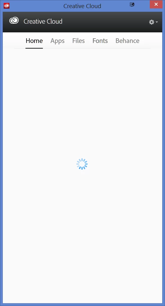 Problem: Opening the Creative Cloud app results in a hung Home, Files, and Fonts pages. Apps and Behance work properly. I was able to sync after I initially updated Creative Cloud after I was granted early access on August 8. I opened Creative Cloud on August 21 and it indicated I needed to update. I updated, but it failed. I followed instructions to install, clean using the Adobe App cleaner, renamed the OOBE directories, rebooted, and then re-installed Creative Cloud. I got the nonresponsive Home, Files, and Fonts except for the spinner in the middle. I uninstalled, cleaned, rebooted, and reinstalled to no avail. I am unable to access the fonts I was previously able to sync. My Windows 7 laptop has not needed an update since I updated it for sync on August 8, and Creative Cloud and syncing is working properly.